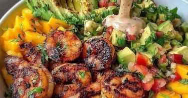 Shrimp and Avocado Bowls with Mango Salsa & Lime-Chili Sauce