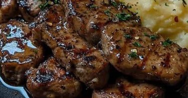 Garlic Butter Beef Bites with Creamy Mashed Potatoes