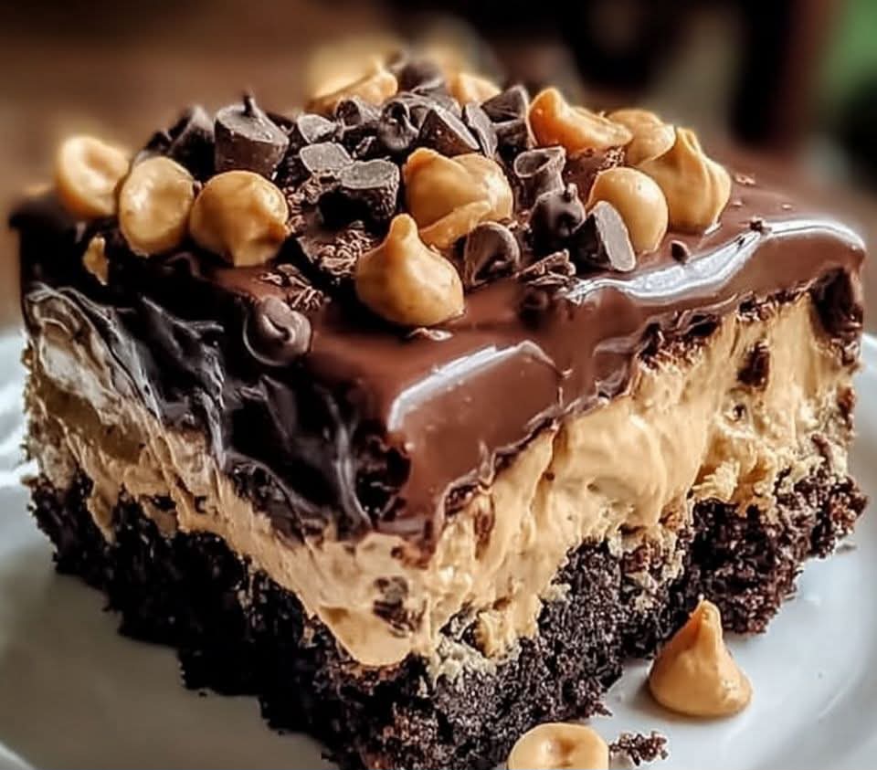 This Chocolate Peanut Butter Poke Cake is ultra-moist, rich, and loaded with irresistible chocolate and peanut butter flavor. A soft chocolate cake is poked and filled with a creamy peanut butter mixture, then topped with fluffy whipped topping and chocolate chips. Perfect for potlucks, holidays, or anytime you’re craving a decadent dessert!