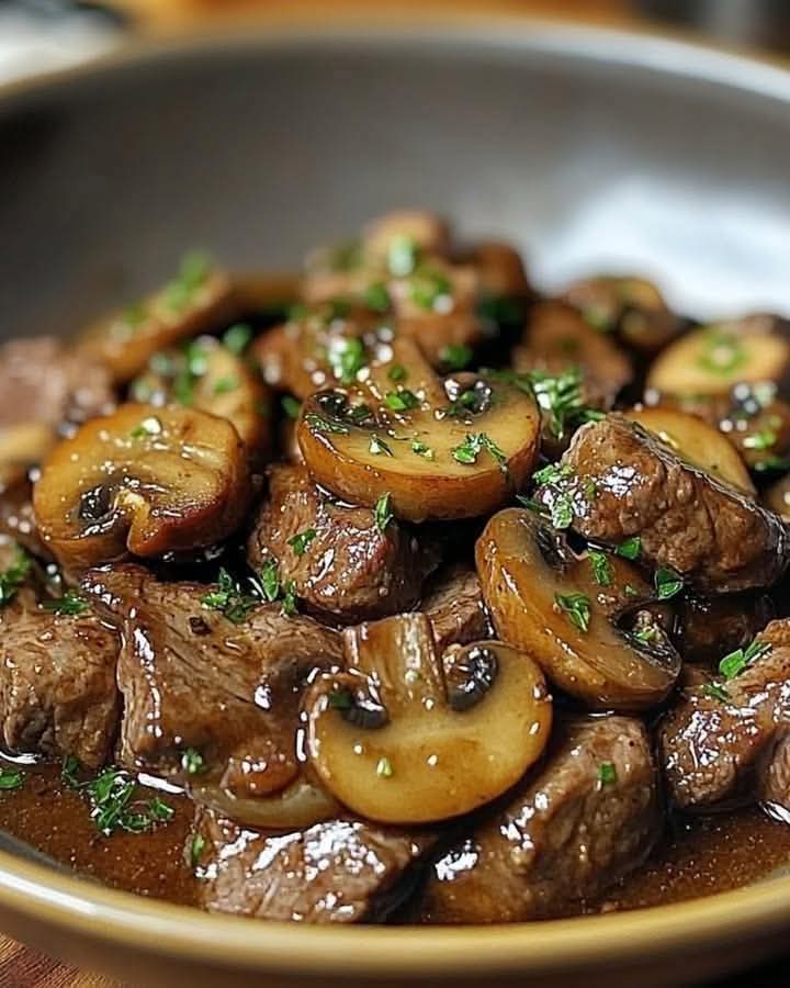 Enjoy your savory and flavorful Beef Tips with Mushrooms!