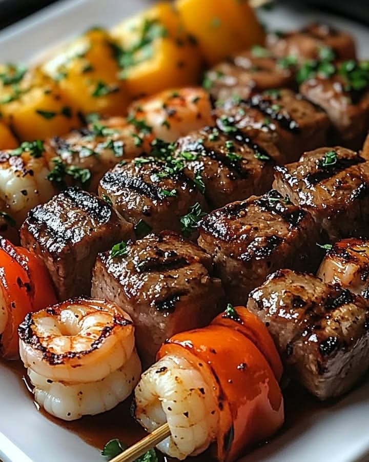 Enjoy! These Grilled Steak & Shrimp Kabobs are full of flavor and perfect for summer grilling, offering a delicious balance of tender steak, juicy shrimp, and fresh vegetables!