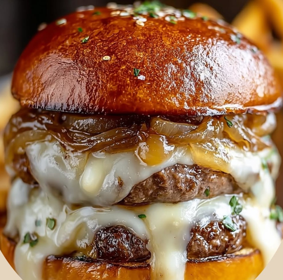 Juicy beef burgers topped with rich caramelized onions and melted Gruyère cheese—all the flavors of classic French onion soup in burger form.