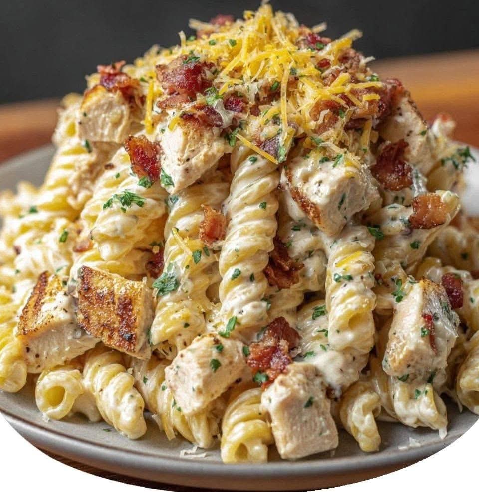 Tender chicken, smoky bacon, and a rich ranch-cheddar sauce tossed with perfectly cooked pasta — this is weeknight comfort food at its best. Creamy, savory, and totally irresistible!