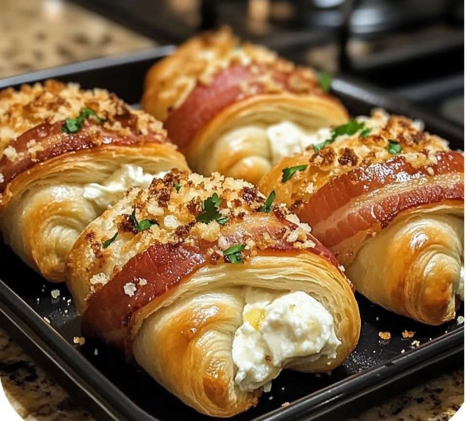 Golden, flaky crescents stuffed with creamy garlic parmesan chicken and crispy bacon — perfect as an appetizer, snack, or quick dinner!