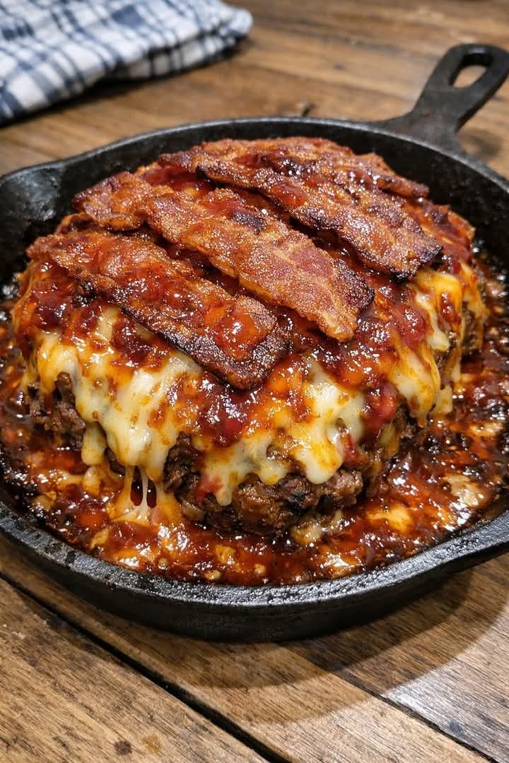 Firecracker Smoked Bacon Triple-Cheese Meatloaf Skillet
