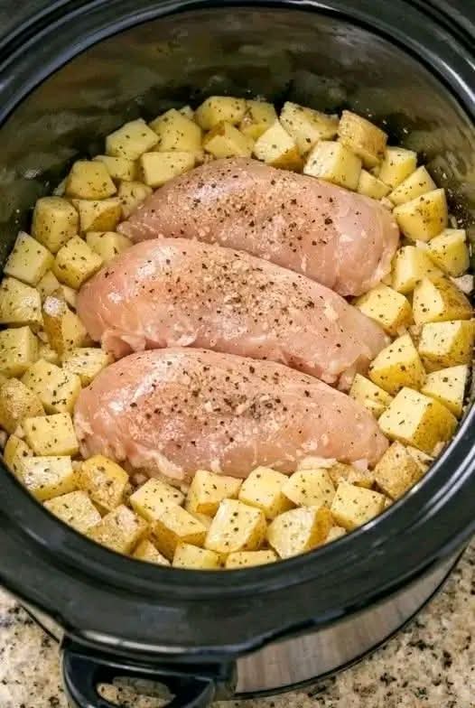 Slow Cooker Garlic Chicken & Potatoes (Creamy Version)