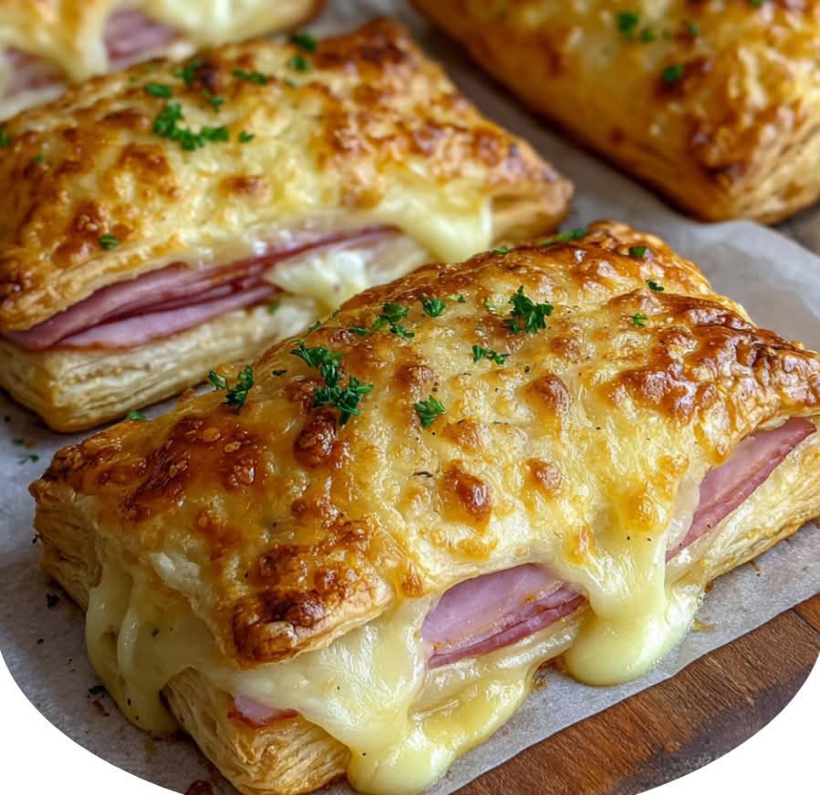 Flaky, buttery puff pastry filled with savory ham and melted cheese, baked until golden and irresistible. Perfect for breakfast, snacks, or even a light dinner.