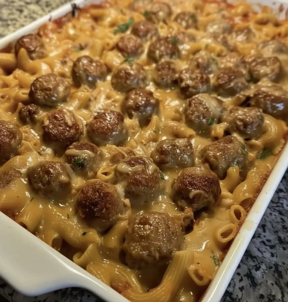 This dish is creamy, cheesy, and super comforting—perfect for family dinners or when you want something hearty and satisfying. The melted cheese with juicy meatballs and pasta is just irresistible!