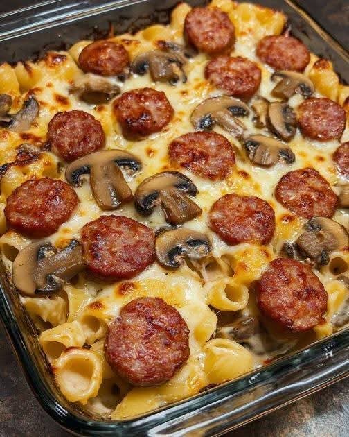 Cheesy Baked Pasta with Sausage & Mushrooms
