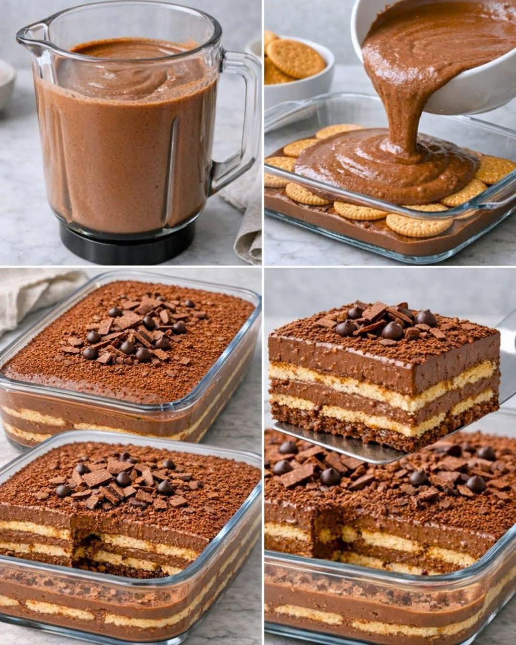 A rich, creamy, no-oven dessert made with chocolate custard and soft biscuit layers. Easy, budget-friendly, and perfect for making ahead.