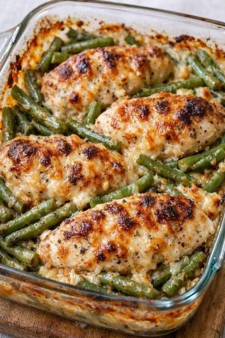 Oven-Baked 4-Ingredient Amish Chicken and Green Bean Bake