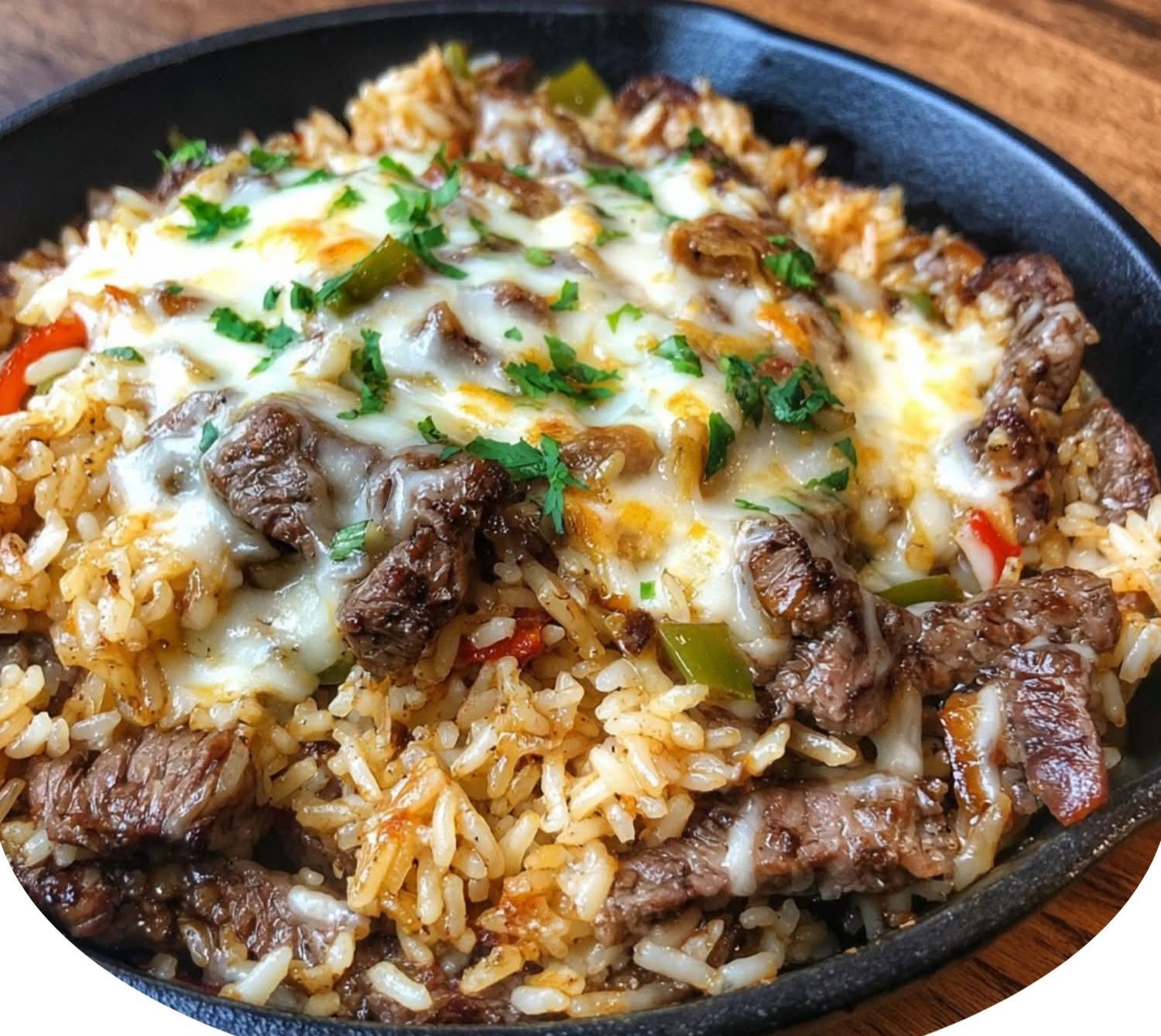 Cheesy Steak & Rice Skillet – Rich, Savory & One-Pan Simple!