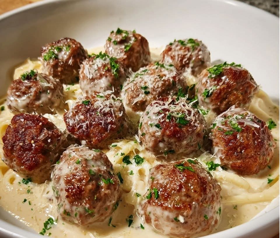 Juicy, tender meatballs in a rich, garlicky, creamy Parmesan sauce — pure comfort food!