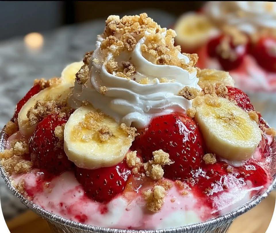 • Optional: garnish with extra strawberries, banana slices, or crushed wafers