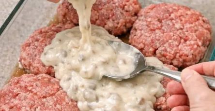 - Pour this mixture over the beef and cheese.