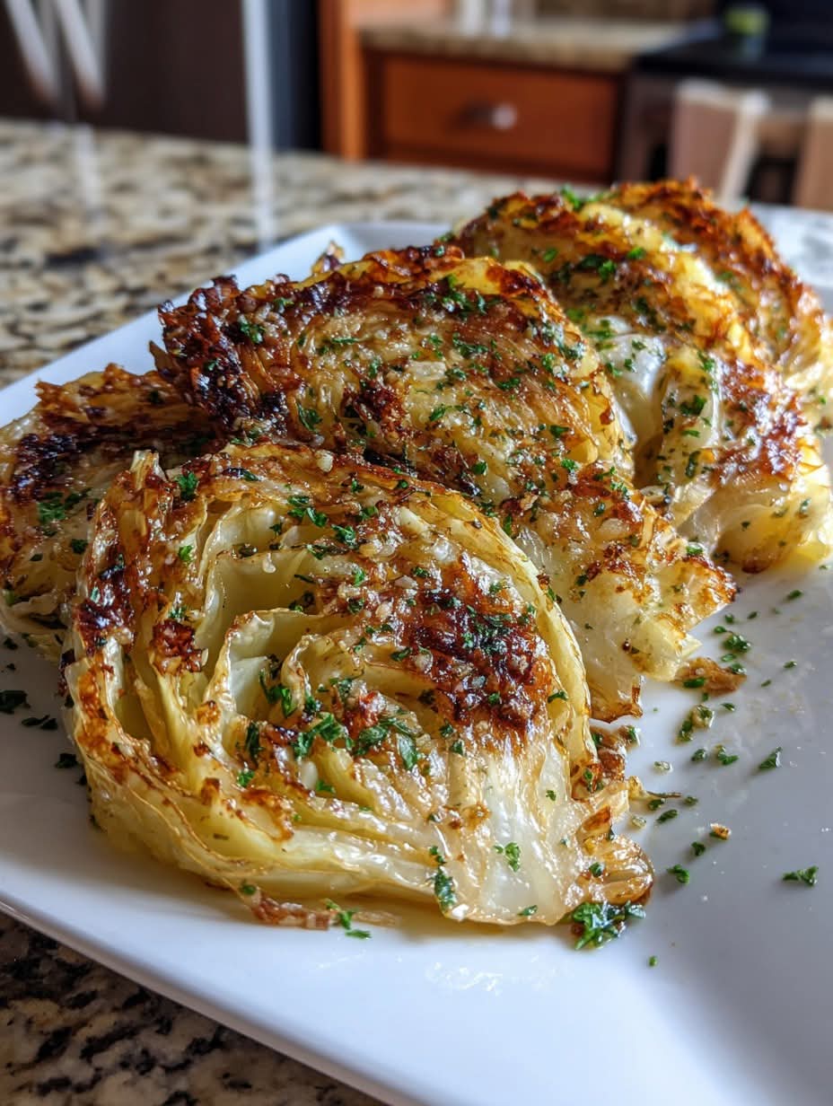Remove any damaged outer leaves. Cut the cabbage into thick slices or wedges (about 2–3 cm thick). - Make garlic butter