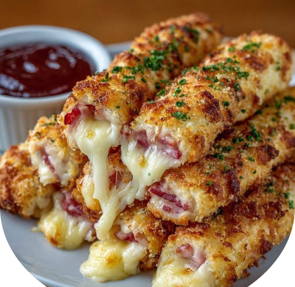 Baked Ham and Cheese Mozzarella Sticks