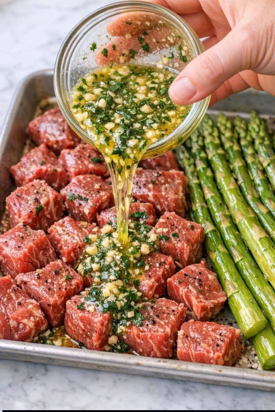 Low Carb Garlic Butter Steak & Asparagus Bake