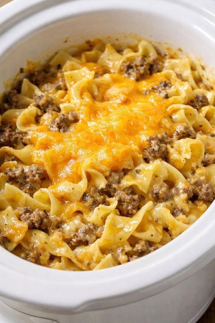 • Cover and cook on LOW for 3–4 hours or until pasta is tender.