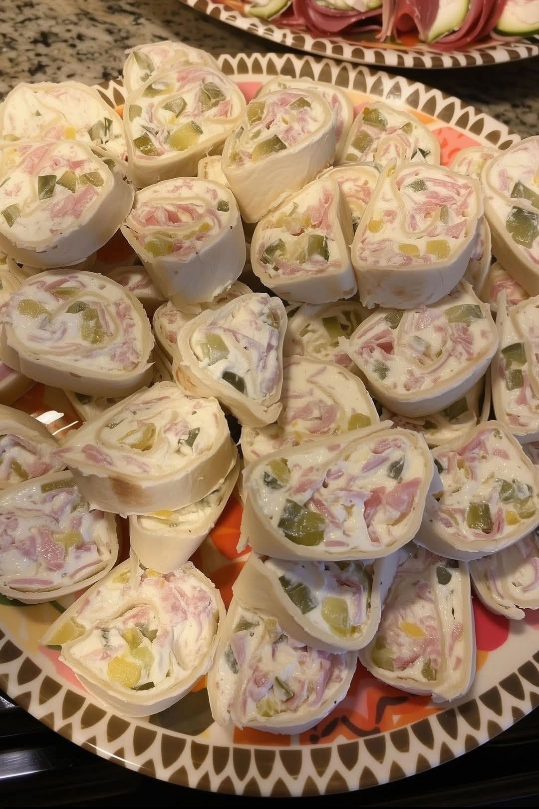 Stir in ham, pickles, peppers, cheese, and herbs. Season with salt and pepper. - Spread & roll
