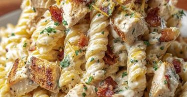 Chicken Bacon Ranch Pasta Tender chicken, smoky bacon, and a rich ranch-cheddar sauce tossed with...