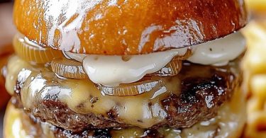 French Onion Soup Burgers Juicy burgers inspired by classic French onion soup, topped with sweet...