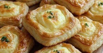 Cheese Puff Pastry Bites Crispy, golden squares of Puff Pastry filled with a creamy, cheesy center—perfect as a warm appetizer…
