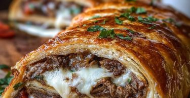 Mozzarella Cheese Steak Stromboli A golden, oven-baked stromboli filled with juicy beef steak...