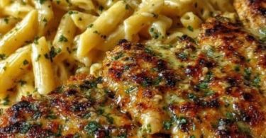 Cheddar Parmesan Garlic Butter Chicken with Creamy Penne Pasta
