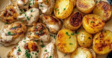 Garlic Cream Chicken with Crispy Baby Potatoe Prep Time: 10 minutes Cook Time: 35 minutes...