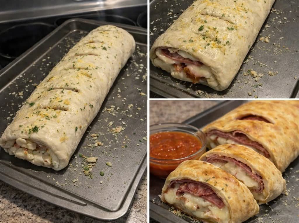 Cheesy Italian Meat Stromboli (Pizza Roll) Ingredients: 1 tube refrigerated pizza dough (or homemade pizza dough) Sliced mozzarella cheese Sliced…