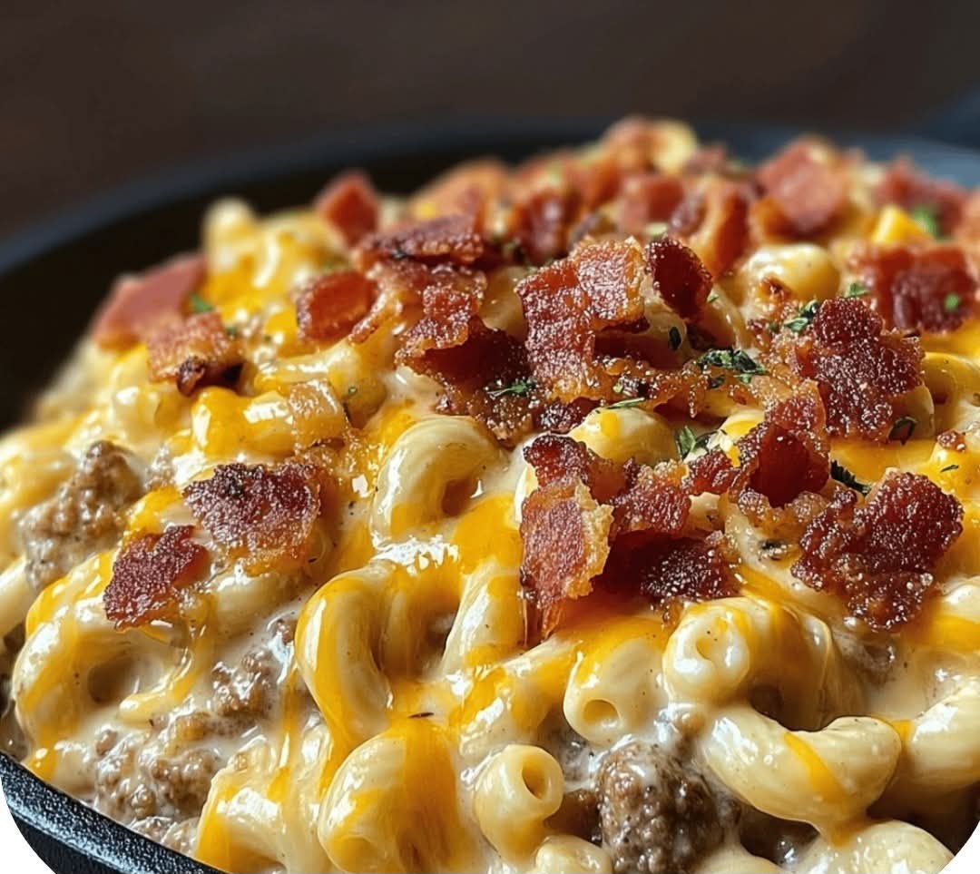 Loaded Bacon Cheeseburger Alfredo Pasta Description: Creamy, cheesy Alfredo pasta meets the bold flavors of a bacon cheeseburger! Tender pasta…