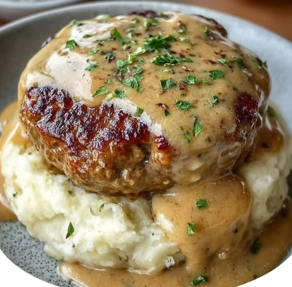 Hamburger Steaks with Gravy Description: Tender hamburger steaks simmered in rich brown gravy and served over creamy mashed potatoes—an easy,…