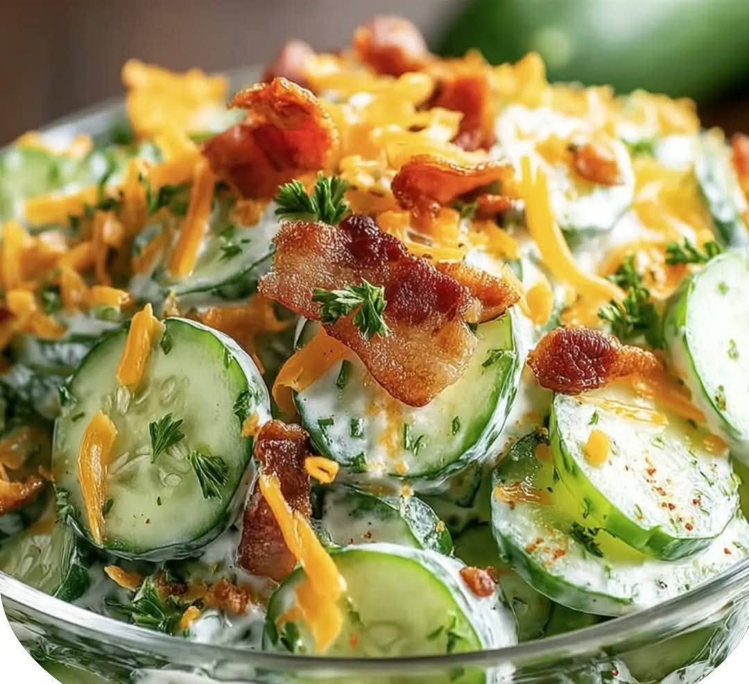 Cucumber Ranch Crack Salad A cool and creamy salad bursting with crispy bacon, sharp cheddar, and fresh cucumbers—quick to toss…