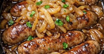 Slow Cooker Sausages with Caramelized Onions (4-Ingredient Comfort Dinner) Tender, juicy sausages slow-cooked with sweet onions in a rich, savory…